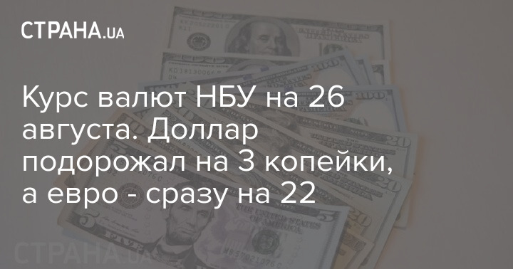 Курс валют НБУ на 26 августа. Доллар подорожал на 3 копейки, а евро - сразу на 22