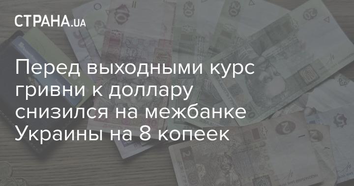 Курс гривни на межбанковском валютном рынке после сохранения в четверг на уровне 27,18 гривен за 1 доллар, в пятницу снизился на 8 копеек и составил 27,26 гривен за 1 доллар.