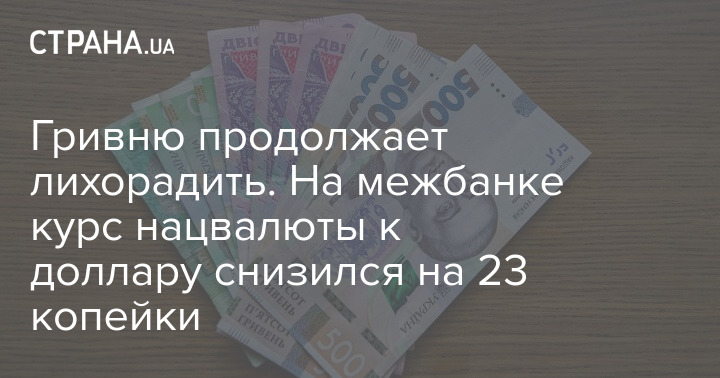 Гривню продолжает лихорадить. На межбанке курс нацвалюты к доллару снизился на 23 копейки