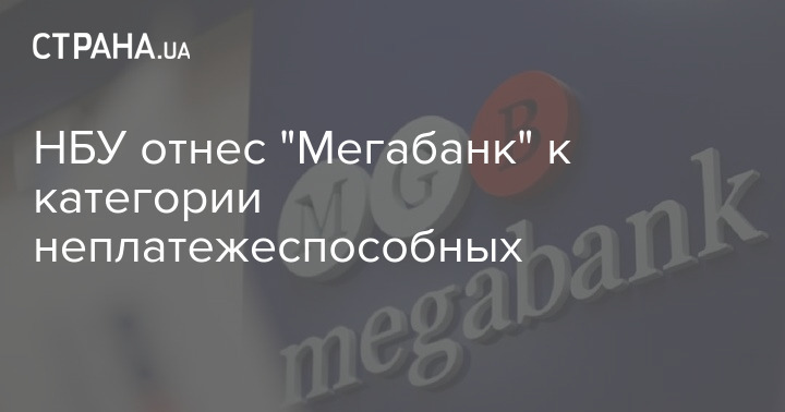 Национальный банк Украины (НБУ) отнёс "Мегабанк" к категории неплатежеспособных. Об этом сообщает пресс-служба финансового регулятора.