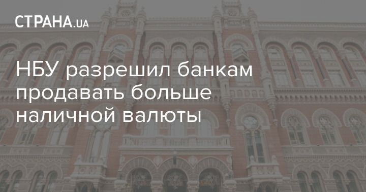 Национальный банк Украины (НБУ) разрешил банкам продавать больше наличной валюты. Теперь банки смогут продавать в наличке половину от купленной у граждан с 13 апреля безналичной валюты (дополнительно к продаже приобретенной с этой же даты наличной валюты).