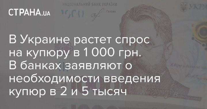 В украинских банках отмечают рост спроса населения на купюру в 1000 гривен и говорят о необходимости введения Нацбанком новых купюр номиналом в 2000 и 5000 гривен.