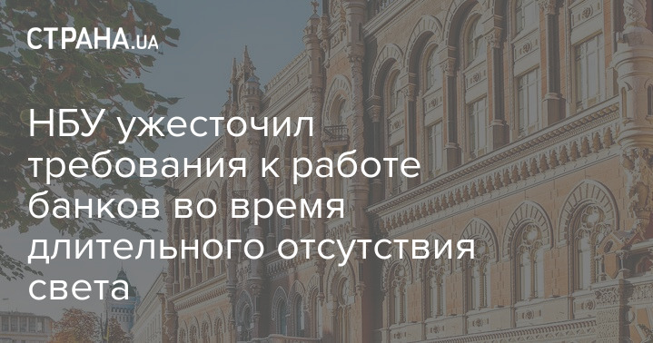 Национальный банк Украины ужесточил требования к работе банков в условиях длительного отсутствия электроснабжения. Также НБУ предложил банкам увеличить лимиты в банкоматах и отменить дополнительные комиссии по картам других банков.