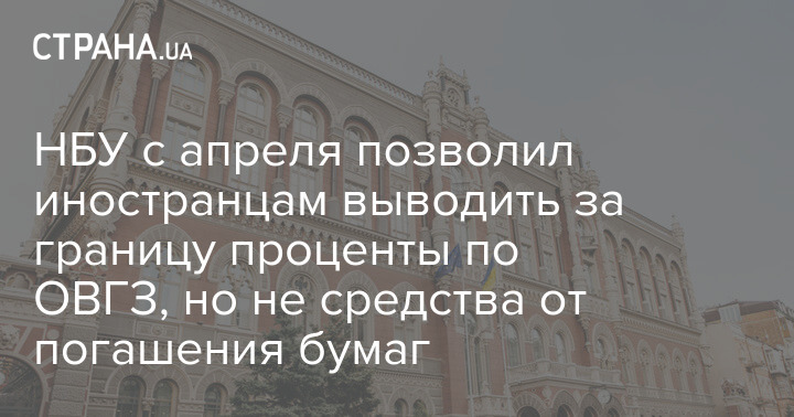НБУ с апреля позволил иностранцам выводить за границу проценты по ОВГЗ, но не средства от погашения бумаг
