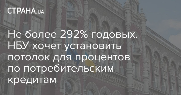 Нацбанк хочет установить потолок кредитных ставок для украинцев на уровне 292% годовых. Потребительские кредиты в Украине не должны стоить более 0,8% в день или 292% годовых в пересчете. Такое ограничение НБУ заложил в свой законопроект, которым вносятся изменения в действующий закон "О потребительском кредитовании".