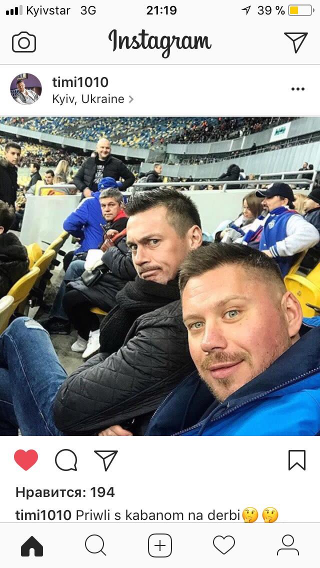 Экс-форвард киевского "Динамо" Артем Милевский находится на трибунах и разместил фото в своем Instagram.