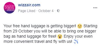 Европейский лоукостер Wizzair разрешил бесплатно проносить в салон самолета одну сумку с большим весом. Об этом говорится в рассылке компании.