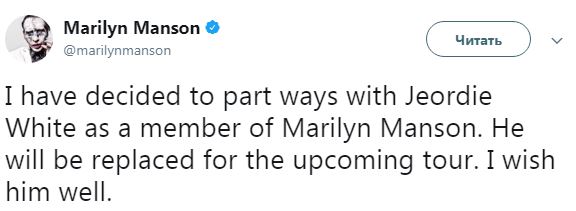 По словам артиста, для грядущего тура группы Marilyn Manson Уайту подберут замену. "Желаю ему всего хорошего", – добавил он.