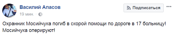 В результате покушения на Мосийчука погиб его охранник, сам нардеп - на операционном столе
