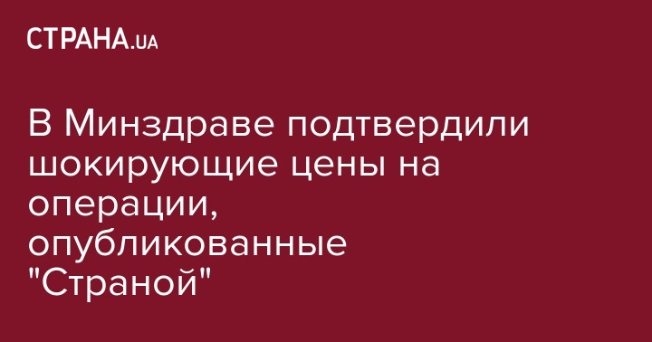 В Минздраве подтвердили заоблачные цены на некоторые медицинские услуги, о которых "Страна" рассказывала в публикации "Шунтирование - 130 тысяч, диагностика сердца - 65 тысяч. Сколько заплатят украинцы за медуслуги после реформы".