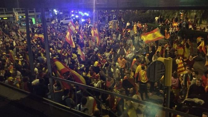 Также протестующие с испанскими флагами, в основном футбольные фанаты, после завершения мирной части протеста против независимости Каталонии напали на студию Catalunya Ràdio, которая входит в Каталанскую медиакорпорацию, и журналистов канала BTV.