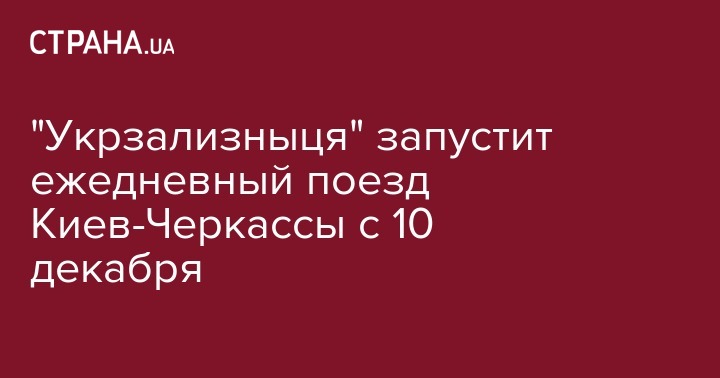 С 10 декабря "Укрзализныця" запускает региональный поезд № 782/781 Киев - Черкассы. Об этом сообщает пресс-служба предприятия.
