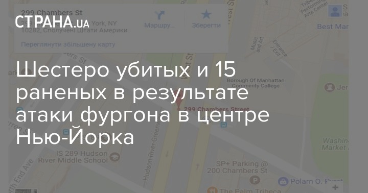 В Нью-Йорке грузовой фургон въехал на велодорожку и, сбив людей, врезался в школьный автобус. Это произошло рядом с пересечением Чеймберс-стрит и Уэст-стрит. Был ли в этот момент кто-то в автобусе, неизвестно.