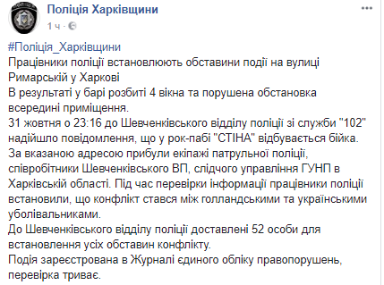 Вечером 31 октября в пабе Харькова "Стена" между украинскими и голландскими болельщиками произошел конфликт, который закончился массовой дракой.