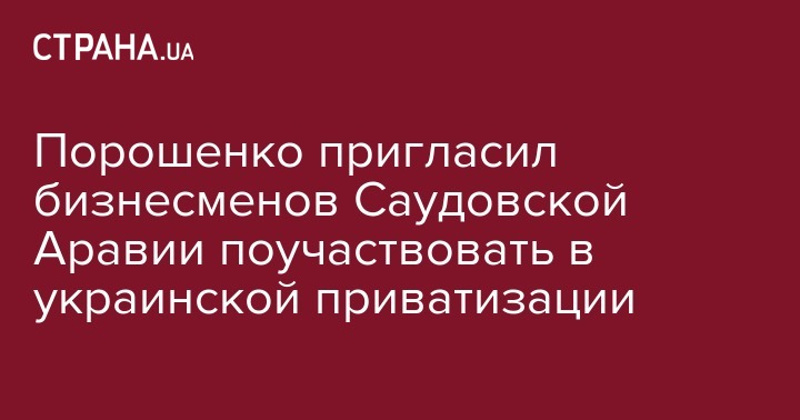 Президент Украины Петр Порошенко во время визита в Саудовскую Аравию пригласил местных бизнесменов принять участие в приватизации на Украине.
