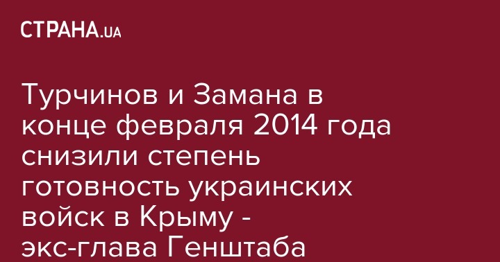 Турчинов и Замана в конце февраля 2014 года снизили степень готовность украинских войск в Крыму - экс-глава Генштаба