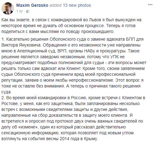 В показаниях Ильин подтверждает адвокату Герасько о готовности выступить в качестве свидетеля в деле о госизмене Януковича, которое сейчас рассматривается в Оболонском районном суде Киева.