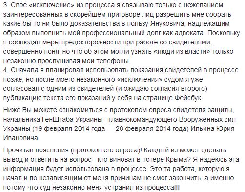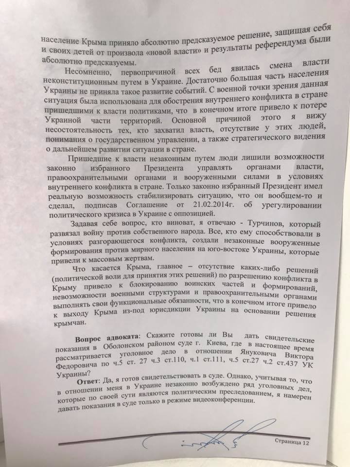 Об этом говорится в показаниях Юрия Ильина, бывшего главы Генштаба ВС Украины во времена Виктора Януковича (уволен со своего поста 28 февраля 2014 года), которые опубликовал на своей странице Facebook ранее отстраненный адвокат беглого президента Максим Герасько.