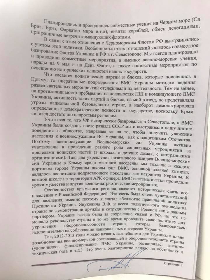 Кроме того, как говорится в показаниях, в марте 2014 года экс-министр обороны Игорь Тенюх запретил выход украинских кораблей в море, что впоследствии привело к их захвату военными Российской Федерации.