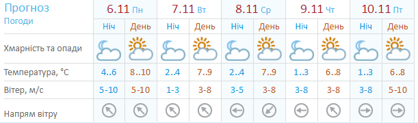 Сайт Sinoptik.ua считает, что без дождей все-таки не обойдется. Осадки вероятны в четверг и пятницу - 9 и 10 ноября. Дневная температура составит +6...+9.