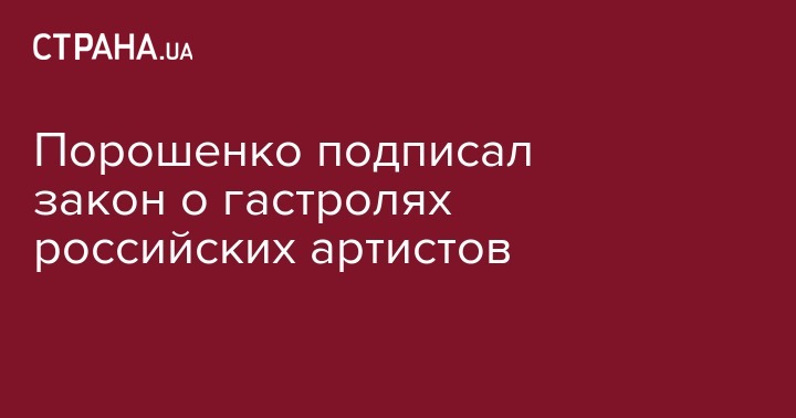 Президент Украины Петр Порошенко подписал закон "О внесении изменений в закон Украины "О гастрольных мероприятиях в Украине". В него добавлены положения, регулирующие вопросы организации и проведения гастролей с участием граждан России.