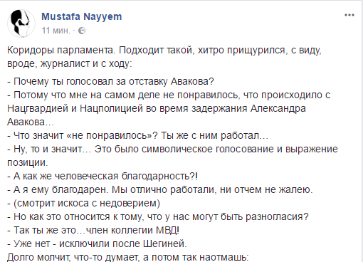 Об этом он написал в facebook, рассказывая о результатах голосования за отставку Авакова.