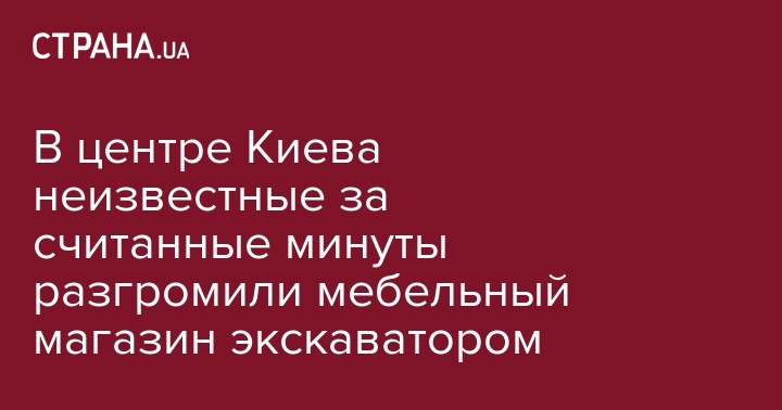 В центре Киева неизвестные за считанные минуты разгромили мебельный магазин экскаватором