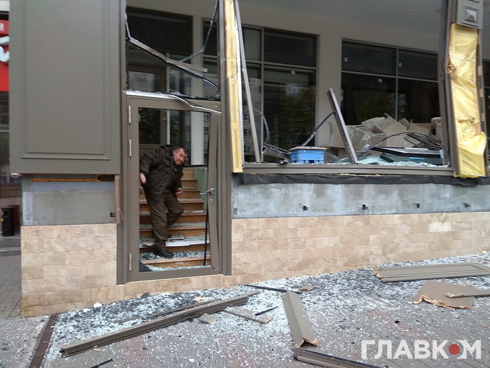 Сегодня утром, 8 ноября, на бульваре Леси Украинки, 5, в центре Киева неизвестные за считанные минуты разрушили здание мебельного магазина. Об этом сообщает корреспондент "Главкома", который стал свидетелем происшествия.