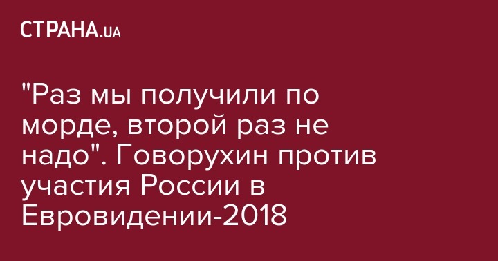 Глава комитета Госдумы по культуре, режиссер Станислав Говорухин заявил, что России стоит отказаться от участия в конкурсе "Евровидение - 2018" с учетом прошлого отношения организаторов к российской участнице Юлии Самойловой. Об этом сообщает РИА Новости.