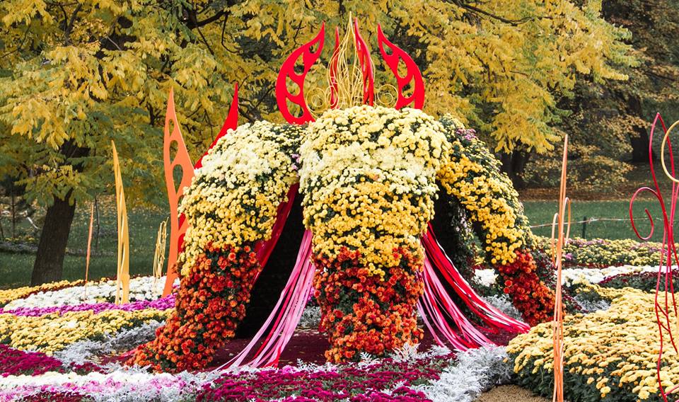 4 октября в столице открылась осенняя выставка хризантем. На выставке под названием "Фантастические истории" на площади 3 700 кв. м сотрудники "Киевзеленстроя" из 25 тыс. цветов создали десять необычных цветочных композиций.