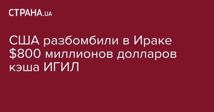 Представитель военного командования США в Ираке генерал Питер Герстен заявил о том, что удалось уничтожить около 800 миллионов долларов наличных, принадлежавших террористам ИГИЛ. Деньги были "изъяты из хозяйственного оборота" террористов во время ракетно-бомбовых атак на различные объекты, контролируемые ИГИЛ, передает УНН.