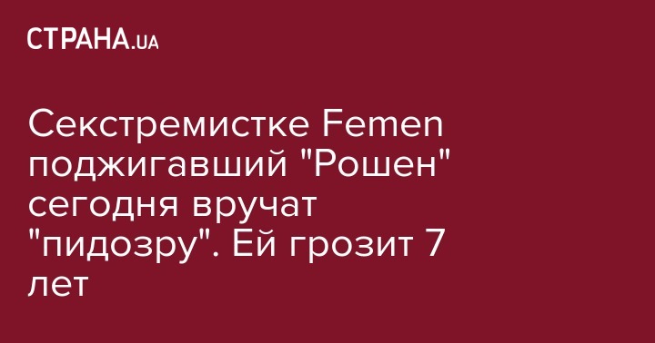 Секстремистке Femen поджигавший "Рошен" сегодня вручат "пидозру". Ей грозит 7 лет