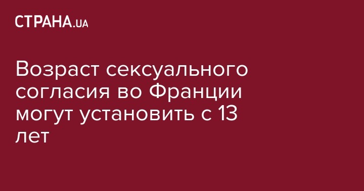 В правительстве Франции приступили к подготовке законопроекта об установлении 13 лет, как "законного возраста сексуального согласия". На такую меру во Франции решили пойти после нескольких случаев педофилии, когда вину злоумышленников не смогли доказать в суде.
