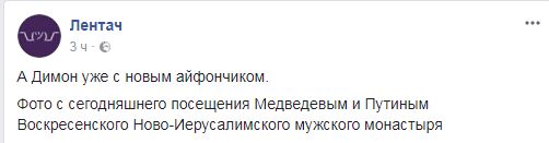 Российский премьер-министр Дмитрий Медведев был замечен с iPhone X. Снимок с политиком был сделан во время посещения им Воскресенского Ново-Иерусалимского монастыря в Истре, пишет iguides.ru.
