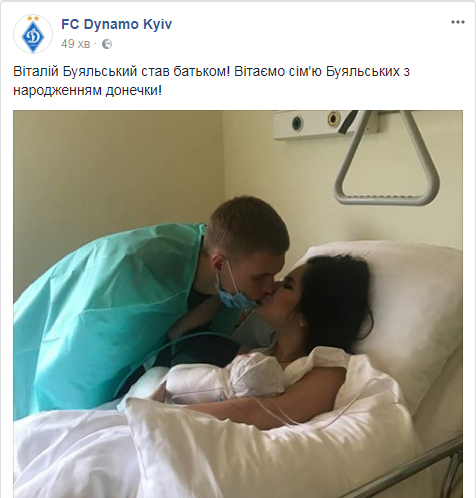 В семье полузащитника киевского "Динамо" Виталия Буяльского произошло радостное событие. Его жена Алина родила девочку.