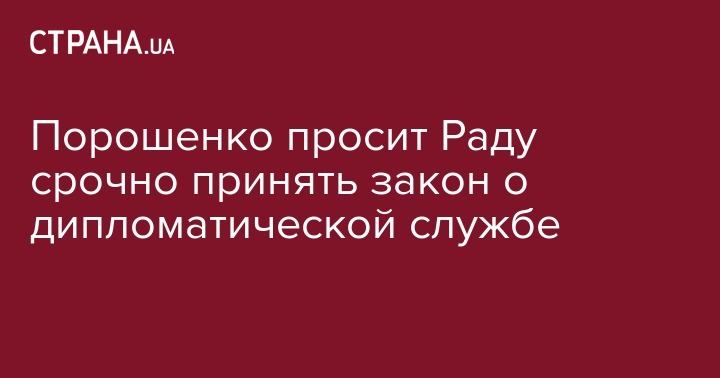 Петр Порошенко предлагает Верховной Раде рассмотреть законопроект о дипломатической службе как неотложный. Об этом президент сообщил в Facebook.