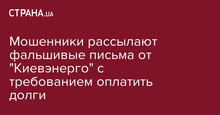 Мошенники рассылают по электронной почте сообщения от имени "Киевэнерго" с требованиями оплатить долги. Об этом сообщает пресс-служба "Киевэнерго".
