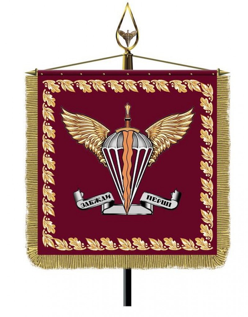 Новый штандарт является полотнище темно-бордового цвета, закрепленное на деревянном древке черного цвета. В центре размещено изображение эмблемы ДШВ, по периметру - наличник золотистого цвета в виде орнамента из дубовых и калиновых листьев. Края полотнища, кроме верхнего, украшены бахромой золотистого цвета. Стороны полотнища идентичны. Верхушка древка стреловая из желтого металла, в центре которой помещена эмблема ДШВ. Полотнище прикрепляется к основанию верхушки древка с помощью шнура, соединенного с деревянным стержнем, помещенным в верхнем крае полотнища.