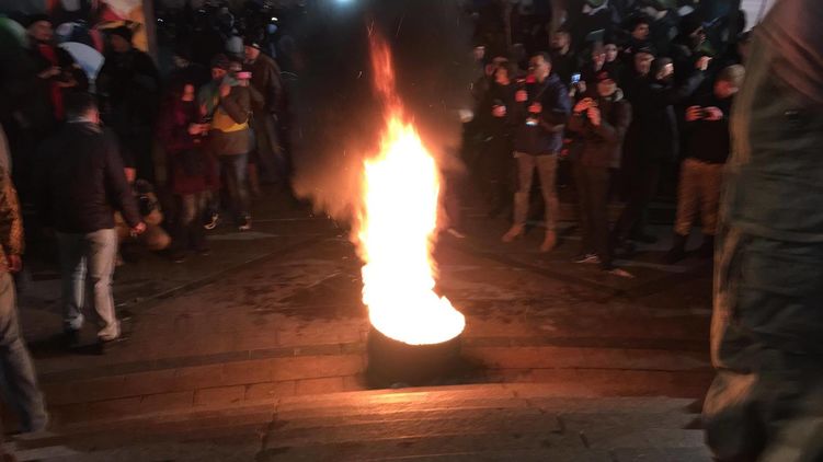 20:25 Полиция и пожарные зашли в толпу, потушили шины и ушли.