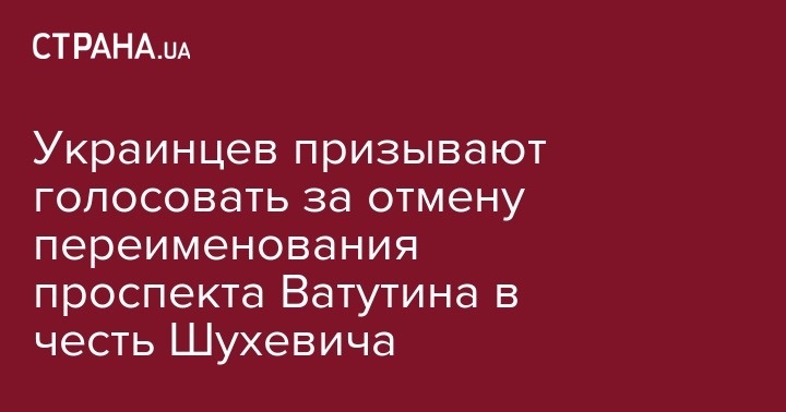 Украинцев призывают голосовать за отмену переименования проспекта Ватутина в честь Шухевича