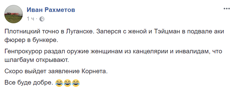 После заявления плотницкого на сайте луганского "МВД" появилось обращение Корнета.