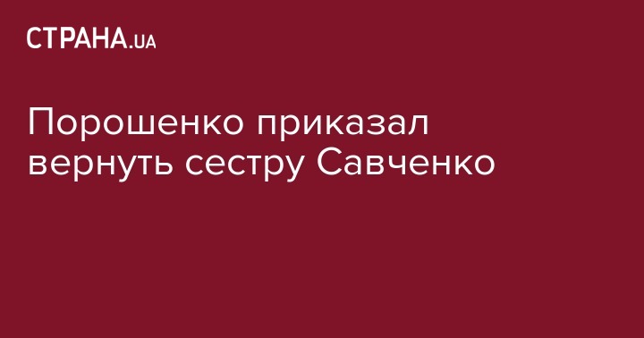 Президент Украины Петр Порошенко распорядился сделать все ради возврата сестры Надежды Савченко в Украину, ранее ее задержали на российско-украинской границе, передает ГазетаРу.