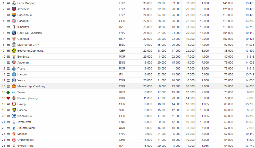 Топ 25 лучших команд Европы. Новый рейтинг УЕФА