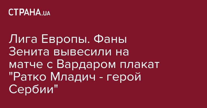 А в Питере, где "Зенит" принимал "Вардар" (2 - 1) ультрас вывесили политический плакат в поддержку Ратко Младича, которого Международный трибунал приговорил к пожизненному заключению.
