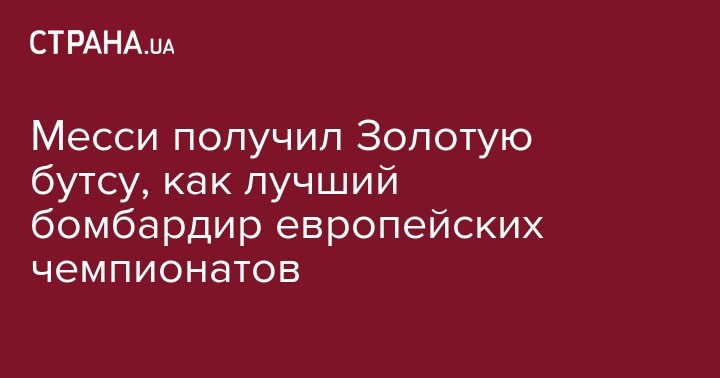 Звезда "Барселоны" Лионель Месси получил "Золотую бутсу" как лучший европейский бомбардир. Об этом сообщает пресс-служба каталонского клуба в Twitter.