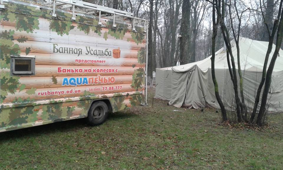 На территории Мариинского парка в правительственном квартале появилась баня на колесах. Об этом сообщают пользователи Facebook в группе "Печерский район".
