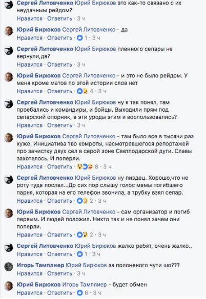 Советник президента Украины Юрий Бирюков заявил, что после проверки выяснилось, что военные из 58-й бригады ВСУ предприняли самовольную атаку на позиции т.н "ЛНР", провалили ее и понесли серьезные потери. Об этом он сообщил в комментариях в Facebook.