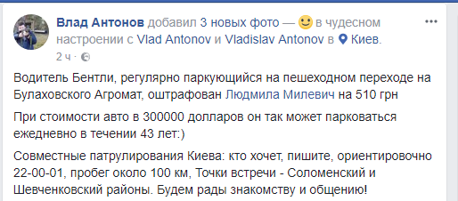 Журналист даже сопоставил штраф и стоимость авто и пришел к выводу, что с Bentley за 300 тыс. долларов водитель так может парковаться ежедневно в течении 43 лет.