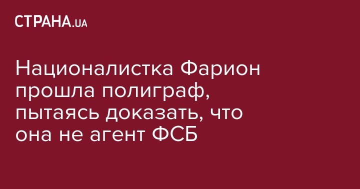 И вот 24 ноября во Львове состоялась проверка на полиграфе, во время которой Фарион задали 11 вопросов с целью выяснить, сотрудничала ли она со спецслужбами иностранных государств (в частности, ФСБ России), сама или вместе с кем-то. А также, собирала ли информацию для спецслужб, и получала ли оперативный псевдоним.