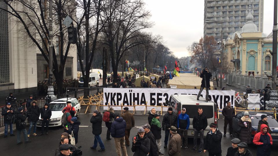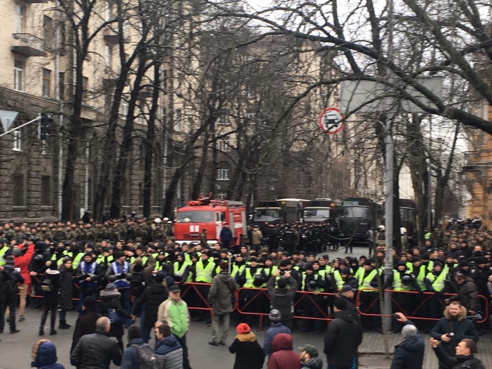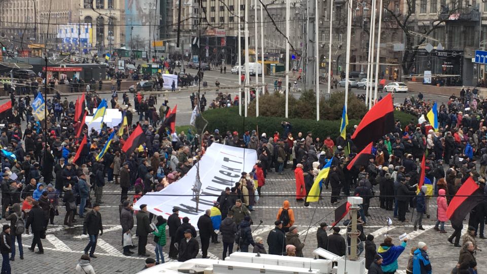 12:09 Сейчас митингующие выстраиваются в колону на перекрестке улицы Владимирской и Проспекта победы. Выйдут через бульвар Шевченко на Крещатик и пройдут до аллеи героев Небесной сотни. А потом пойдут на Банковую к Порошенко.